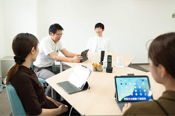 スキルアップを目指す方の思いに応えられるよう、マニュアルや教育体制の充実に力を注いでいます。日頃の業務では、診療同行から始めて、業務マニュアルを確認しながら、個々のスピードに合わせたOJTを行います。訪問未経験の方やブランクがある方もご安心いただければと思います。