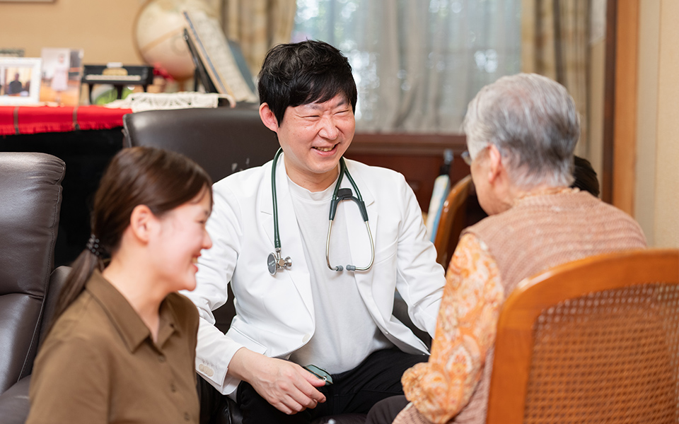 クリニック内のスタッフが力を合わせることはもちろん、医療関係者、介護関係の方、ご家族など、患者さんに寄り添うすべての方と、お互いに手を取り合う姿勢を大切にしています。地域に安心を届けられる、より良い在宅医療の提供が私たちの目標です。